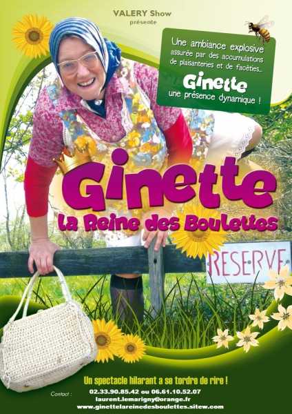 Un spectacle humoristique et décapant qui met en scène "Ginette", une villageoise de 60 ans, un peu niaise mais terriblement futée, un personnage dont la verve et le franc-parler sollicitent régulièrement la participation du public. Pendant 75 minutes, "Ginette", la Reine des Boulettes", fait s'esclaffer de rire, les publics les plus sérieux, à travers ses sketches et les situations loufoques ou cocasses de son show...Un spectacle hilarant !